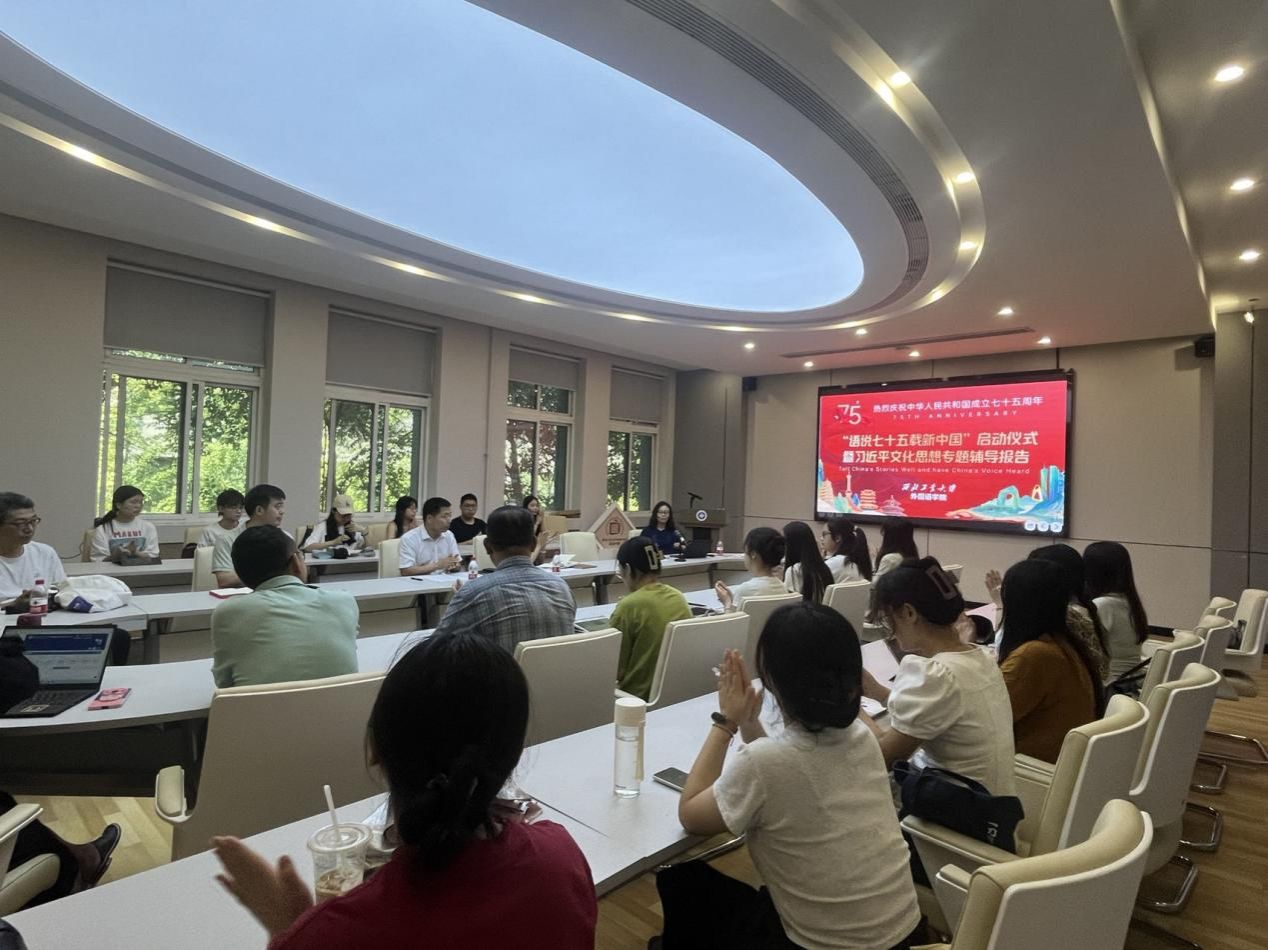 在学院楼204会议室举办了“语说七十五载新中国”启动仪式暨习近平文化思想专题辅导报告会,特邀我校马克思主义学院蒲瑶教授做专题报告。本次活动各师生党支部书记、支委、学生预备党员、辅导员参加,学院党委书记王高祖主持。