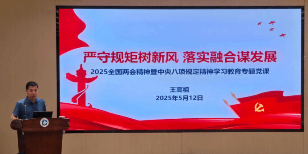 4月27日,素人 开展深入贯彻中央八项规定精神学习教育专题党课,党委书记王高祖以《严守规矩树新风 落实融合谋发展》为题,为学院领导班子、支部书记、支委讲授专题党课。