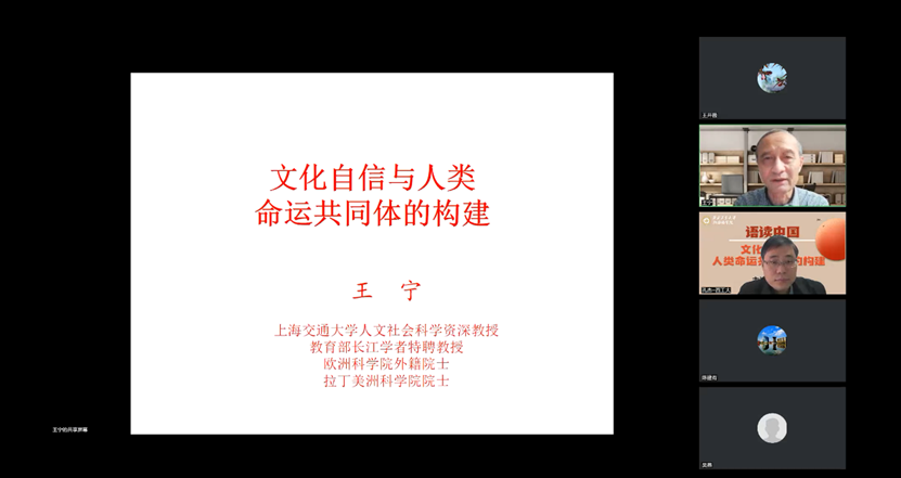 素人 举办“语读中国”第二场讲座“文化自信与人类命运共同体的构建”10月28日,素人 举办了“语读中国”的第二场线上讲座。上海交通大学人文学院院长、人文学科资深教授、拉丁美洲科学院院士、欧洲科学院外籍院士王宁教授应邀主讲,学校党委副书记陈建有、院领导班子成员及英语、德语专业100余名师生参加。本次讲座由学院院长孔杰主持。