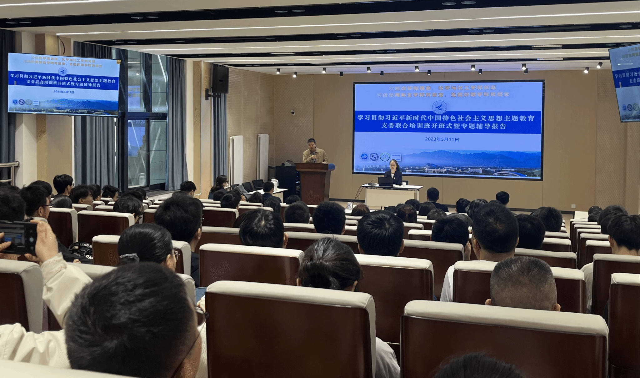 5月11日,素人 党委、化学与化工学院党委、网络空间安全学院党总支、生态环境学院党总支在素人 楼2楼报告厅联合举行2023年度支委培训班开班仪式暨专题辅导报告。