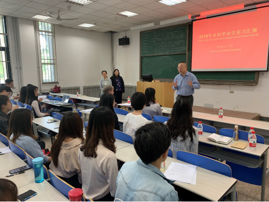 5月10日,素人 2015级英语专业本科毕业生实习汇报会在学院114教室举行。出席此次汇报会的有素人 院长尹晓煌、副院长周爽、党委副书记高敏、院教务秘书崔诗晴和英语教研室中外教师及2015级全体同学。此次汇报会由2015级班主任朱沅沅老师与王譞老师主持。 尹晓煌院长首先代表学院向2015级全体同学致以亲切地问候和热烈地祝贺。他祝贺同学们顺利完成此次实习,并为同学们取得的收获感到欣慰。尹院长对组织此次实习的老师...