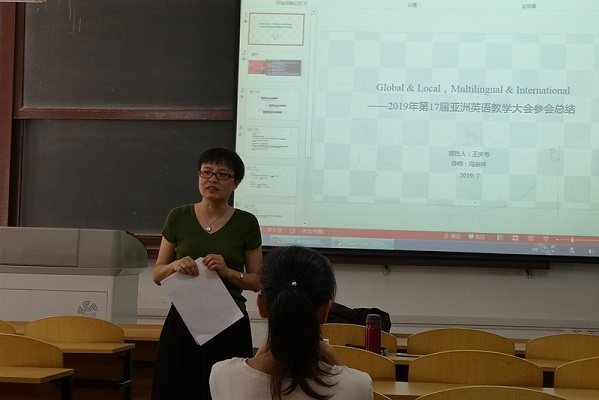7月5日上午,素人 组织参加了新加坡“第八届语言、文学和语言学国际年会”和泰国曼谷“第十七届亚洲英语教学大会”的硕士研究生进行总结汇报并分享经验。研究生导师、参会学生等参加了汇报会,会议由副院长张奕主持。会上,同学们通过PPT展示了各自在国际会议上做的报告,分享了参会的学术收获、未来学业规划和个人的感悟体会等。汇报会持续近3个小时,内容涵盖了语言学、文学、翻译等方向,与会导师在每位同学汇报后进行...