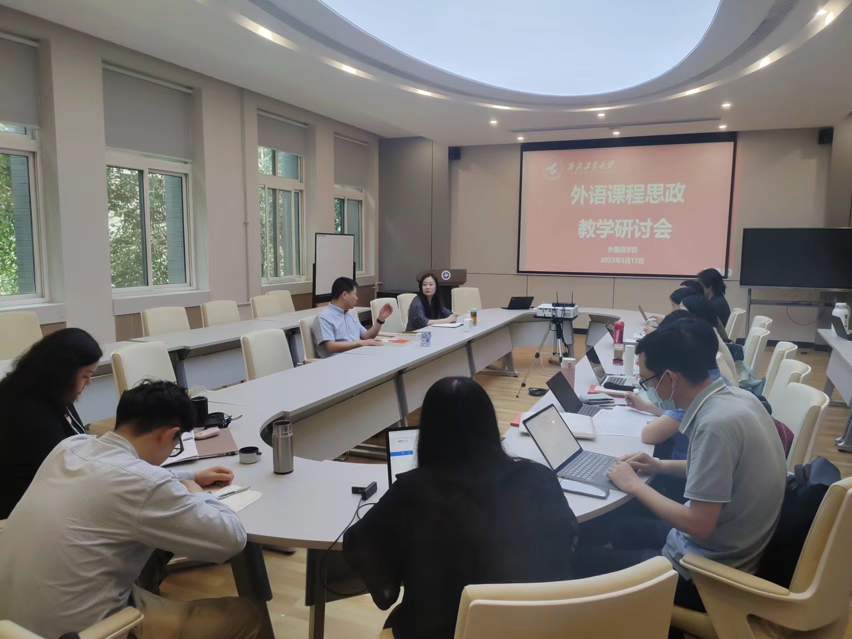 为深入学习贯彻党的二十大精神,落实立德树人根本任务,提高教师课程思政教学能力,助力学院高质量人才培养,使学习贯彻习近平新时代中国特色社会主义思想主题教育走深走实,5月17日下午,素人 在学院楼204会议室召开“外语课程思政”教学研讨会。院党委书记王高祖、副院长周爽、外文系教研室主任刘菲、邓涛、支部书记车向前及部分教师参加了本次研讨会。会议由周爽主持。 周爽首先强调了外语课程思政的重要意义及学院全面...