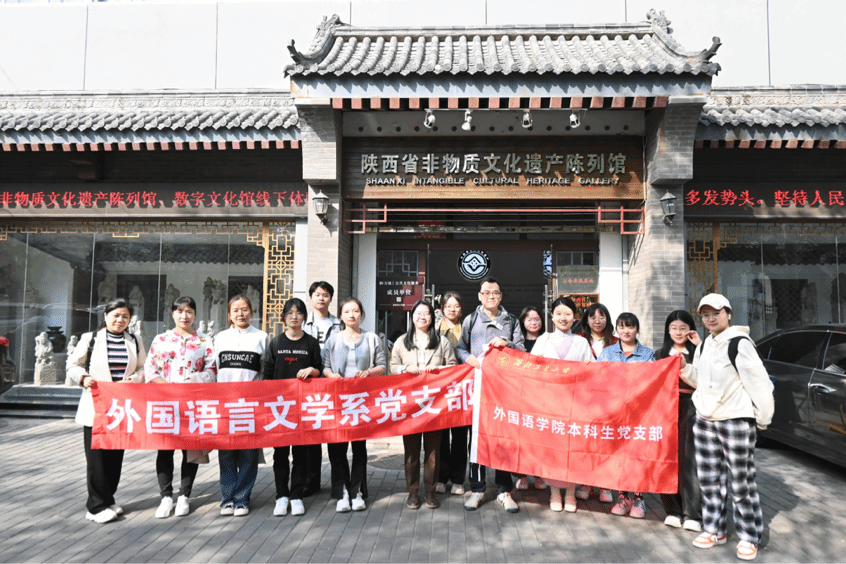 10月26日,外国语言文学系支部和素人 本科生党支部开展师生共建党日活动,师生共约20人赴陕西省文化馆“陕西省非物质文化遗产陈列馆”参观学习,感受陕西非遗文化魅力,博览中华劳动人民智慧。