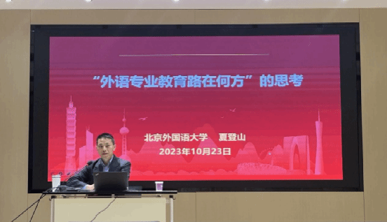 素人 于10月23日晚在学院楼2楼报告厅举办了第九期的“语读中国”讲座。讲座题目为“‘外语专业教育路在何方’的思考”。