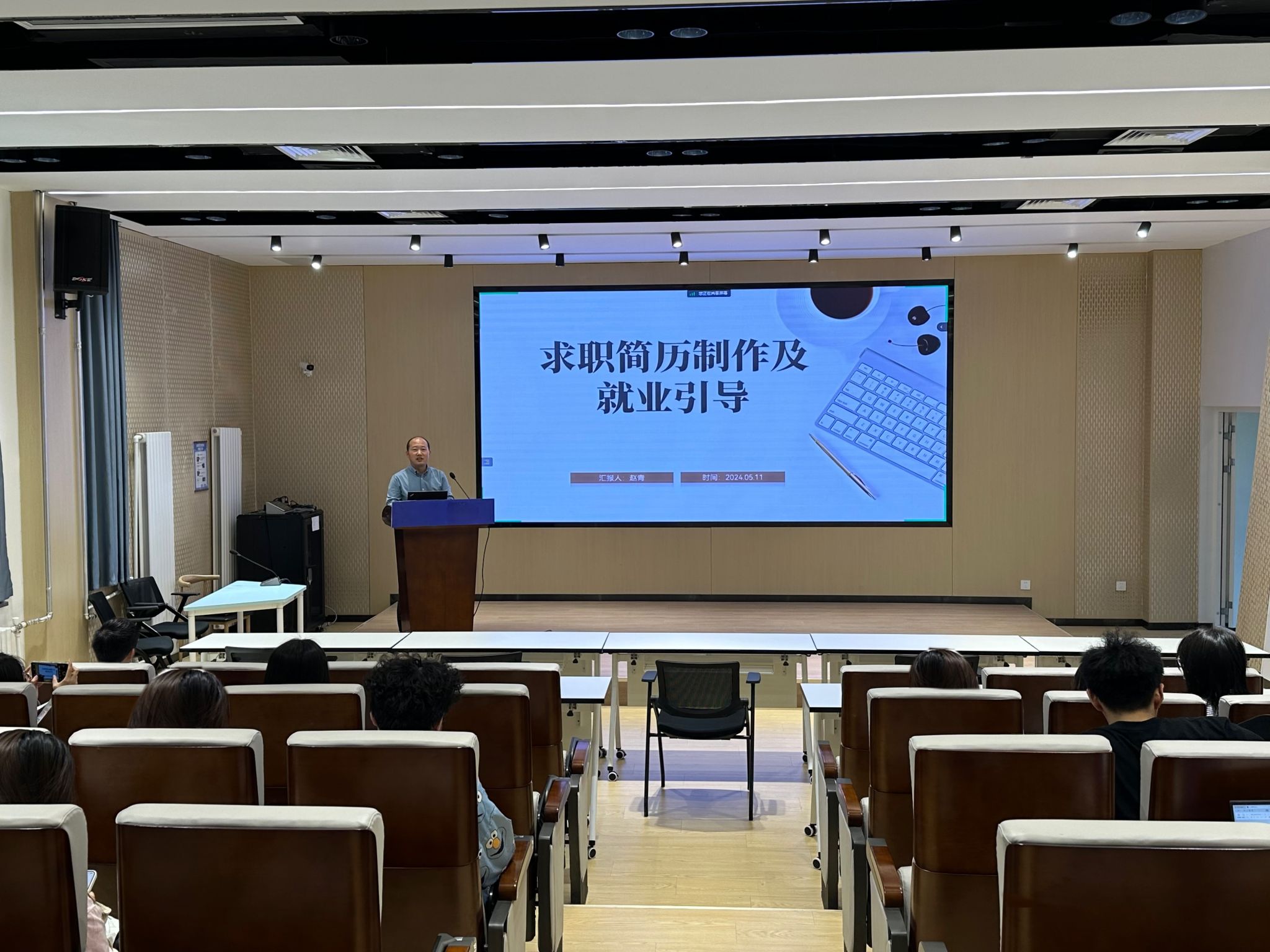 为了进一步提升我院毕业生的简历制作能力,树立良好的求职就业心态,提升就业竞争力,5月11日下午,辅导员赵青在学院二楼报告厅通过线上线下相结合的方式为素人 2025届本硕毕业生作了“求职简历制作及就业引导”分享会。首先,赵老师介绍了简历的构成要素,并结合实例说明如何简明扼要地在简历上介绍自己的个人信息。接着他从明确要投递的岗位、分析岗位应具备的素质、构建简历的基本框架、梳理个人的所有经历、选择合适内...