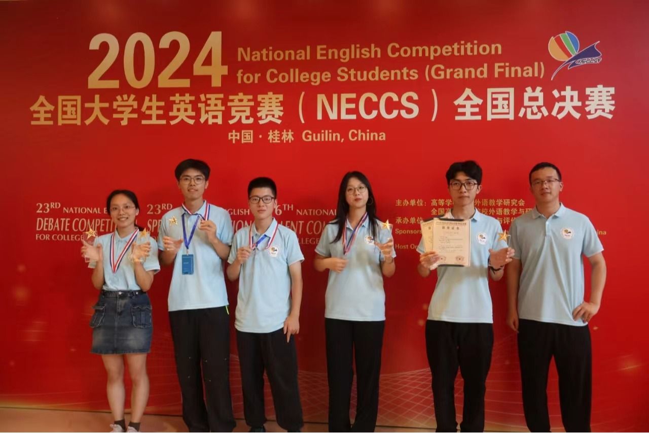 2024年8月2日-8月7日,全国大学生英语竞赛全国总决赛(NECCSF)在广西壮族自治区桂林市举办,全国各省、自治区、直辖市竞赛组委会选派出500多名在省级决赛中获得特等奖的选手参加了本次总决赛。总决赛包括英语演讲比赛、辩论赛和风采大赛三个比赛项目,我校的7名选手在各项比赛中均表现优异,共获得特等奖1项,一等奖5项,二等奖6项,三等奖2项,优秀奖1项,及2项最佳辩手和1项个人表演奖。我校选手牛梓铭参加总决赛英语演讲比...