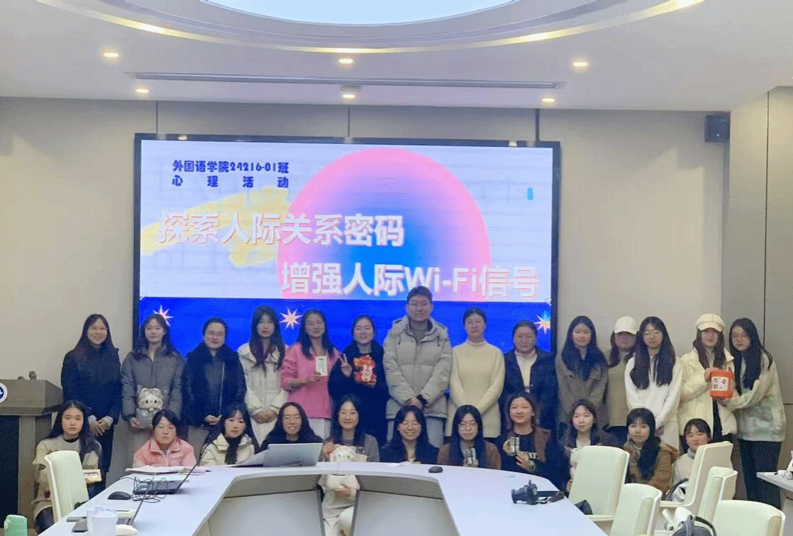 为增强学生心理健康意识,更好理解人际交往奥秘,营造积极向上的班级文化氛围,素人 24216-01班于12月12日晚在学院楼204开展了以“探索人际关系密码,增强人际Wi-Fi信号”为主题的心理活动,班级全体成员参与。活动伊始,主持人赵卓婷介绍活动目标,阐释人际关系的重要性。随即通过一系列生动有趣的情景设置,让同学们亲身体验人际交往中常见的问题及应对技巧。大家纷纷积极参与,勇敢地迈出了交友的第一步,展现出主动交...