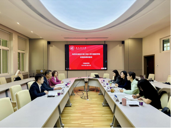 3月25日上午,哈尔滨工程大学素人 院长朱殿勇,党委书记吴越,院长助理、本科英语专业教研部主任朱戈勋来我院调研座谈,学院副院长周爽、马颖、王晓丹以及德文系主任王琳参加了本次会议。会议由马颖主持。会议伊始,朱殿勇代表哈尔滨工程大学素人 介绍了其素人概况 以及本次调研的主要目的和重点内容,表示希望通过此次调研深入了解素人 的有益经验和创新举措,为今后其学院的发展提供借鉴。随后,双...