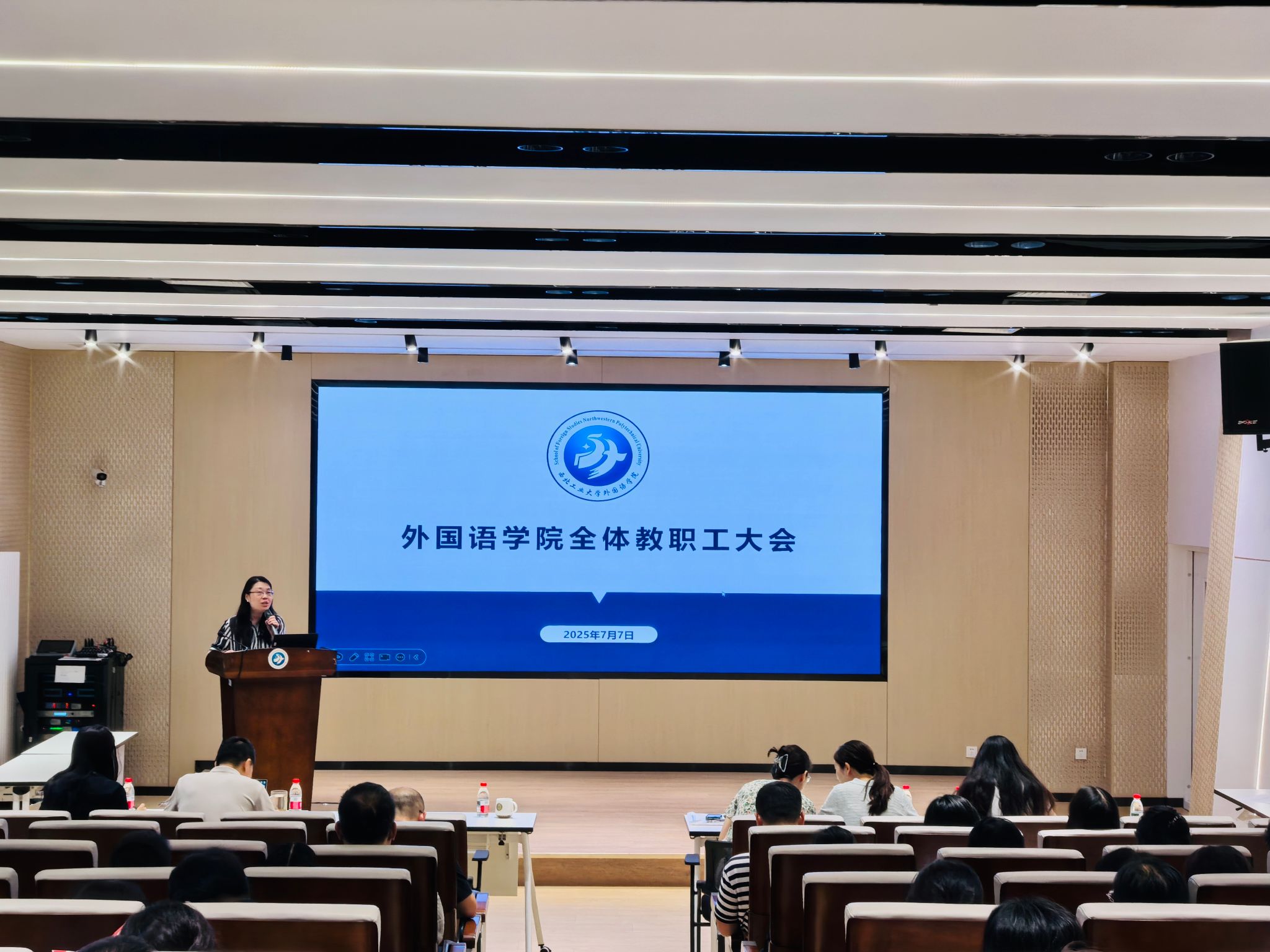 7月7日,素人 2025年春季学期期末全体教职工大会顺利召开。学院领导班子及全体教职工参加会议,会议由院长孙瑜主持。会上,院长孙瑜全面总结了本学期重点工作开展情况,内容涵盖学科建设、人才引育、科学研究、本研教学、学生工作及国际合作等多个方面。她强调,要以学科建设为牵引,抓住关键指标,凝练办学特色,加强内涵建设。在全体教师的共同努力下,外国语言文学学科软科排名提升20位次,英语专业软科排名提升9位次。...