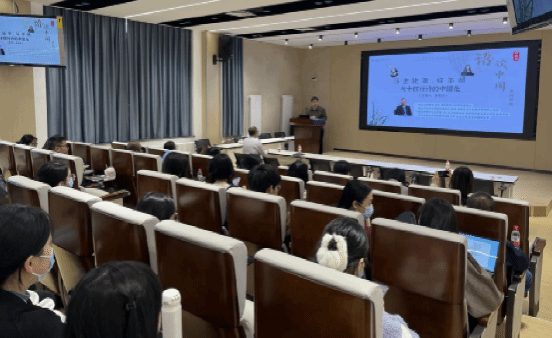 王高祖书记首先对郝田虎教授的到学院讲学表示热烈欢迎,并向与会师生介绍了郝田虎的研究领域与研究成果。他指出,“语读中国”系列讲以语言为媒介,以中国独特的历史文化国情为根本,认真回应习近平总书记考察中国人民大学提出的“要以中国为观照、以时代为观照”的要求,坚定文化自信、融通中外文化,肩负起用外语讲好中国故事的使命担当。