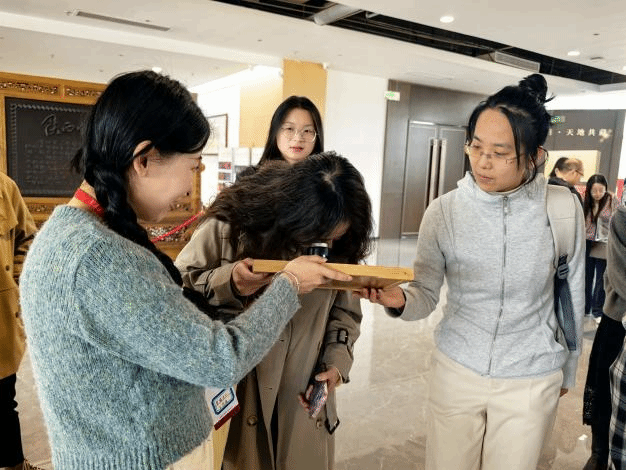 活动过程中,师生党员在泾渭茯茶总裁胡歆的带领下,实地参观了泾渭茯茶综合展示厅、茯茶文化博物馆、益生源记仿古作坊及数智化绿色生产线。通过现场观摩,师生党员深刻感受到了传统茶文化的深厚底蕴与创新活力,并深入认识到每片茶叶承载的千年匠心精神,以及每道工序中传承者对品质的坚守。此次所见所感,将进一步转化为师生推动文化国际传播的实践动力。