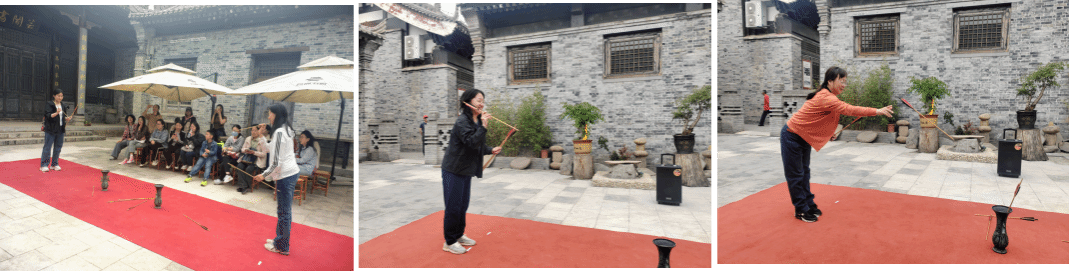 讲座结束后,大家通过系列体验活动再一次感受当代与传统文化的有机对接。观看大型实景演出《二虎守长安》感受现近代关中军民保家卫国的壮烈历史;书院投壶活动,于方寸之间体悟“礼乐相和”的雅趣;手绘团扇则以笔墨为媒,将“学为好人”“清正廉明”等箴言题于素绢,让传统文化在手作中焕发新生。