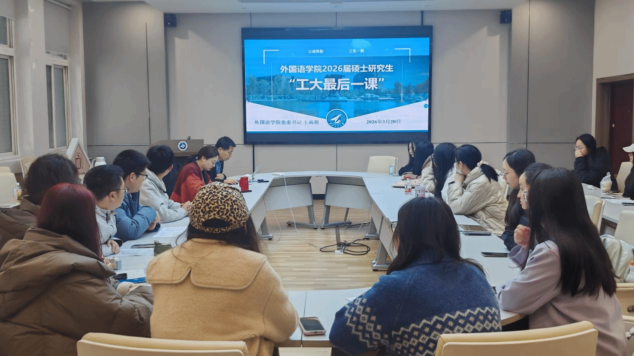党委书记王高祖以“以语为桥,以心铸魂,在世界变局中书写中国外语人的时代答卷”为题向2026届硕士毕业生讲授“工大最后一课”,为即将告别校园、奔赴新征程的毕业生们指引方向、凝聚力量。讲座由院党委副书记张桑桑主持。