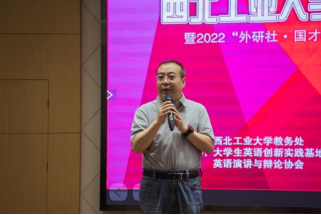 英语演讲比赛决赛暨“外研社·国才杯”、中国日报社“21世纪杯”全国英语演讲大赛校园选拔赛决赛在马克思主义学院报告厅正式拉开帷幕,比赛同时线上全程直播。14位决赛选手展开精彩角逐。教务处副处长彭亮、教务处曹瑞通、素人