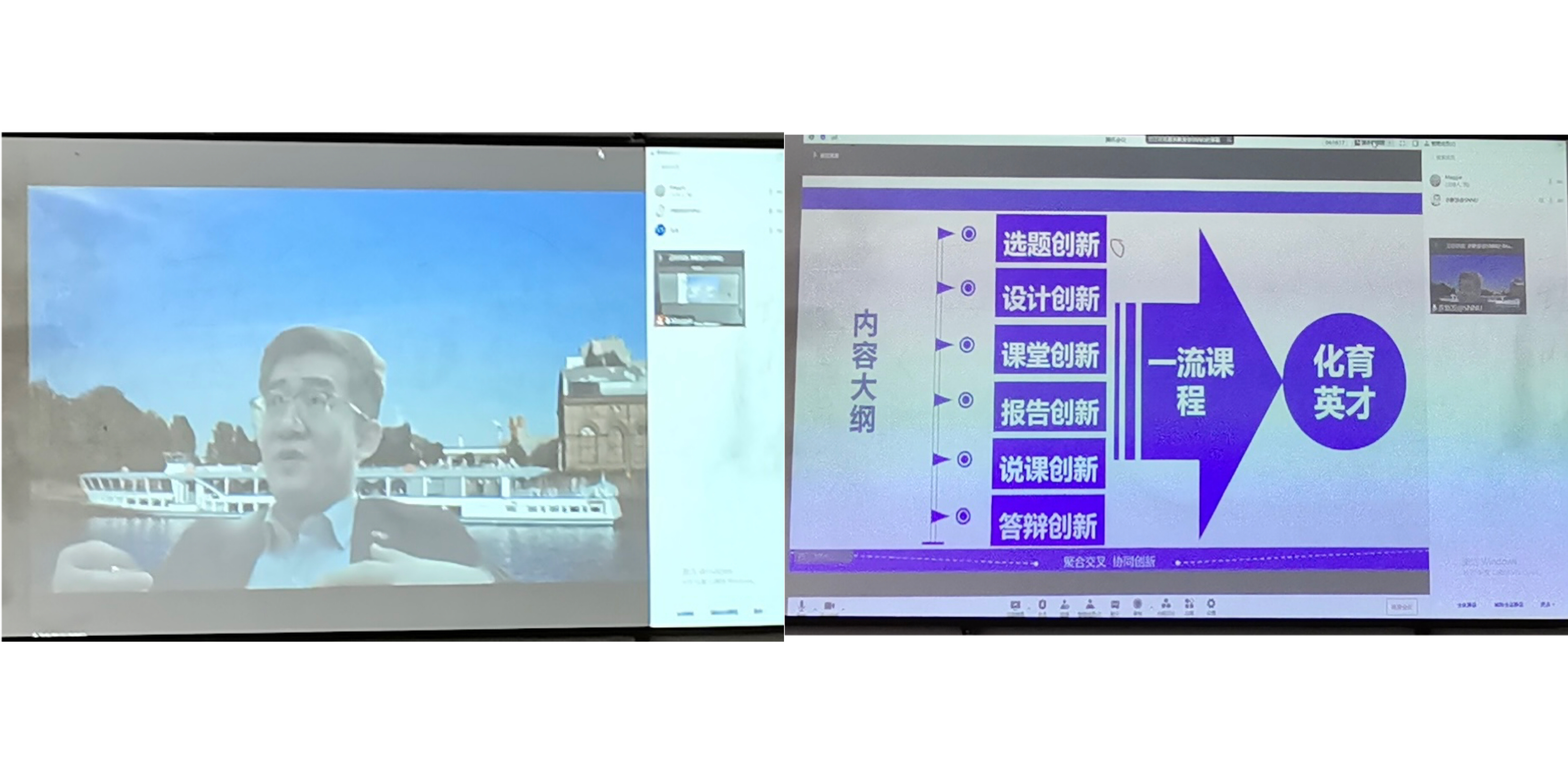 衣老师结合陕西省高校教师教学创新大赛的源起和今年举办的全国高校教师教学创新大赛设计理念和赛制,从选题、设计、课堂、报告、说课、答辩六个方面的创新着眼,详尽阐释了对于如何实现教学创新、打造一流课程的见解。衣老师指出,选题、设计、课堂隶属课堂实践,占教学创新的45%;报告,作为教学元认知的总结,在教学创新效果中占比15%;而说课、答辩则是教师在教学创新大赛中的集中体现,占40%。