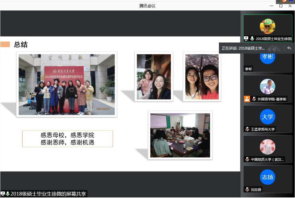 下午,副院长臧小佳博士作了一场题为“‘外国文学研究’的引言”的学术讲座。她介绍了文学、外国文学、外国文学研究等不断扩展的概念内涵及学术外延;学科研究领域和研究方法的传统与新趋势,以及值得深思的问题。接着,副书记高敏介绍学院学生工作,重点从奖学金、助学金、勤工助学等方面的设置体系做了讲解。随后,开展了毕业研究生、在校研究生和即将入学的2021级研究生的学习经验交流会。先后共有9名学生进行了交流分享。他们中既有已经毕业在国内外读博士的郜益珊、朱媛媛、徐微,也有已经就业的王丽婵、白鹤鸣,同时还有硕士研究生在读和即将入学的贾璠、李亚丰、章银、周雅如。他们从不同的角度、有侧重的分享了研途期间,西工大为自己在学业、能力、知识、见识等方面提供的支持以及为何选择西工大。营员们与分享人员热烈互动。