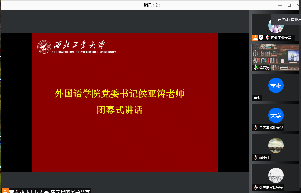 6日下午的闭幕式上,6位营员主动发言,从活动的组织、对西工大的情怀、学术讲座的深度、奖助体系的完备、校友的优秀、对老师的感谢等方面分享了自己的感受。最后,院党委书记侯亚涛讲话,他对本次夏令营活动的圆满举办表示祝贺,对过程中全体老师的辛勤组织和付出表示感谢,期望同学们在短短的两天时间内有所收获,对自己的成长有所帮助,也期待大家能够早日加入西工大素人
