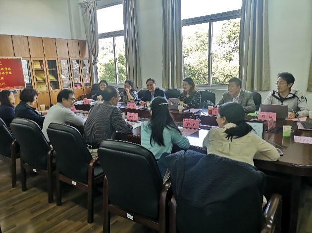 进行座谈,福建师范大学院长葛桂录、副院长林元富、翻译系副主任林丽玲、英语教育系副主任李秀香、英语教育系副主任陈素梅、学科与平台建设办公室田韶峻以及江西师范大学素人