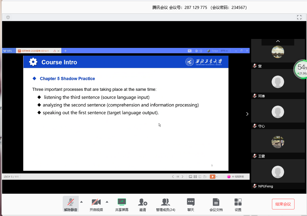 研究生专业课教师覆盖了全院的三个系部,同时,也有双肩挑干部和外籍教师开课。学院下发了专业课试讲的通知后,各系部研究生专业课教师积极参与。参加试讲的18位教师从在线教学前期准备、授课内容、教学设计、教学方法、教学互动及教学考核等几个方面汇报。教师准备充分,参与度高,内容精彩纷呈,最终试讲结束时间比预期长1.5个小时。因语种和研究方向的差异,平时课程交流的机会较少,试讲也为各系部教师提供了一个交流学习的平台。学院10多位教师慕名前来观摩试讲,了解在线教学技术和方法,为后期开课积累经验。