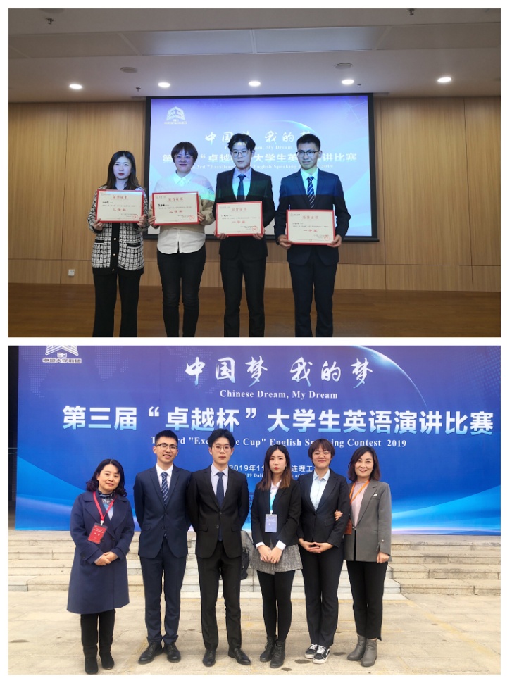 我校大学生英语创新实践基地负责人谭键老师与指导教师苏小青带队,我校四位选手陈城钰、陈柄旭、崔雁航、王瑀萌经由卜雅婷、屈江丽、王晓丹等基地老师的指导,在选手云集、竞争激烈的比赛中表现优异。最终,陈城钰和陈柄旭同学在决赛中凭借其机敏逻辑的思维及扎实流利的语言功底包揽大赛一等奖,崔雁航和王瑀萌同学分别获得三等奖。