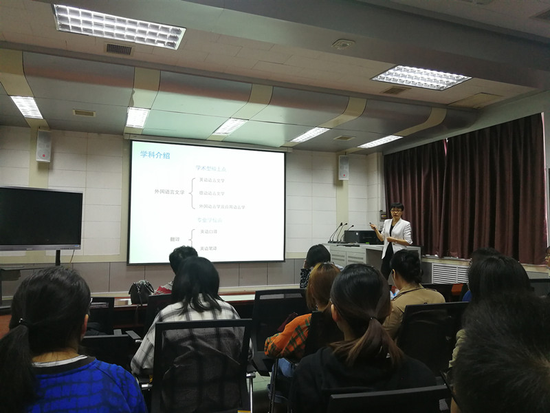 张奕介绍了我院研究生培养的特点及学术型硕士点的基本情况;高敏介绍了研究生奖助政策及专业学位研究生就业情况;宋美盈介绍了翻译硕士点的基本情况;我院2018届硕士毕业生王丽婵(现任西农外语系教师)介绍了在研究生学习期间的成长与收获。宣讲会结束后,招生组对有意愿报考我院研究生的学生进行了面试。