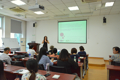 张奕教授代表学院向前来参加学术交流的二位学者表示热烈欢迎,并向学院师生简要介绍了二位学者的研究方向及成果。Herry-Bénit教授任教于法国巴黎大学,曾于巴黎八大从事博士后科研工作。Przewozny-Desriaux教授现任教于图卢茨大学,于巴黎索邦大学取得博士学位,主持并参与包括PAC-ToE,ICE-IPAC等多项语音学科研项目。