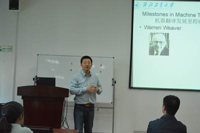 2018年4月27日上午,应学院邀请,英国斯特林大学讲师、我院特聘研究员张霄军博士在学院报告厅作了题为“机器翻译的技术伦理”的学术讲座。讲座由院党委书记张应祥同志主持。我院师生参加了此次报告会。
