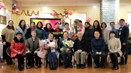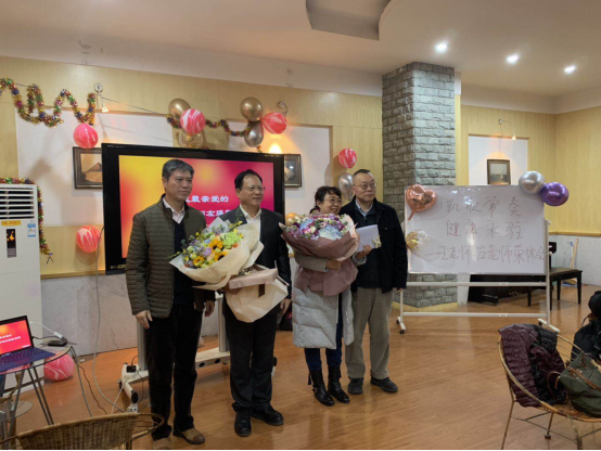 茶话会在一段记载两位荣休教师从教数十年的视频中拉开帷幕。尹晓煌院长首先代表学院向两位荣休教为学院发展作出的贡献表示衷心地感谢,对他们退休生活致以诚挚祝福。他充分肯定了两位老师在学院学科建设、教书育人、人才培养等工作中发挥的重要作用;希望他们继续关注学院的发展。他还号召青年教师要以老教师为榜样,不忘初心,踏实工作,努力做好教书育人工作,为学院发展贡献力量。外国语言文学系主任李利敏老师对两位教师表达了感谢和祝福,并表示会继续发扬两位教师爱岗敬业,无私奉献,严谨治学的态度和精神,为外院的发展添砖加瓦。在热烈的掌声中,尹院长与张书记向两位教师赠送了鲜花与礼物,并合影留念。