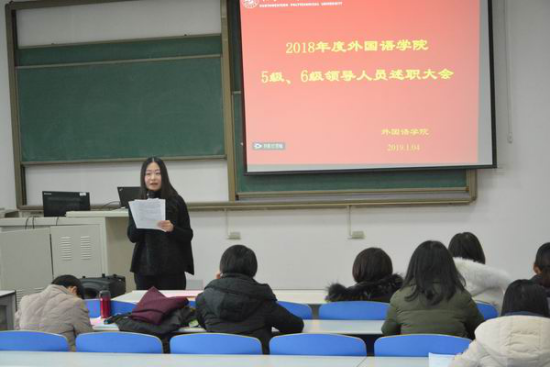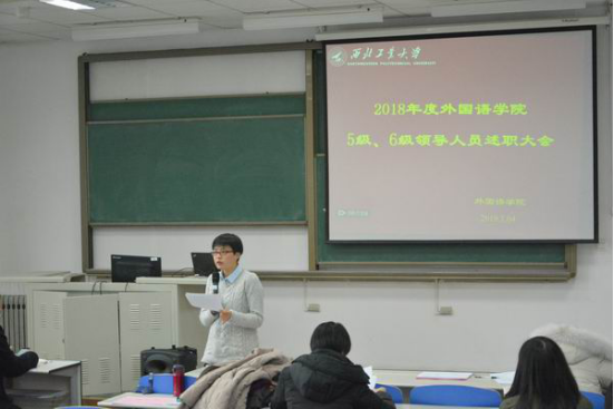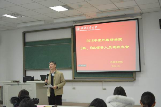 全体教职员工在学院楼206室举行2018年度领导班子述职考评大会。大会由院长尹晓煌主持,学院党委书记张应祥、常务副院长、副书记张文涛、副院长张奕、周爽、副书记高敏,以及素人
