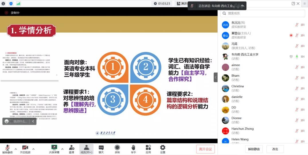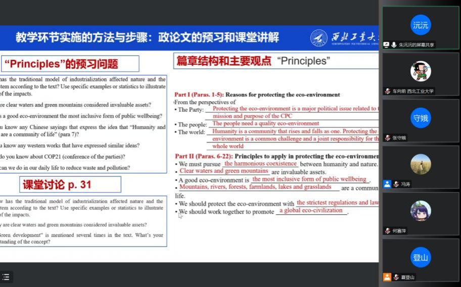 2023年3月29日,高等学校“理解当代中国:英语读写教程”虚拟教研室第五期教研活动成功举办。活动面向全国使用该系列教材的外语教师开展,由《英语读写教程》副主编、北京外国语大学夏登山教授主持,我院外国语言文学系英语教研室朱沅沅副教授和车向前副教授进行了教学案例示范。