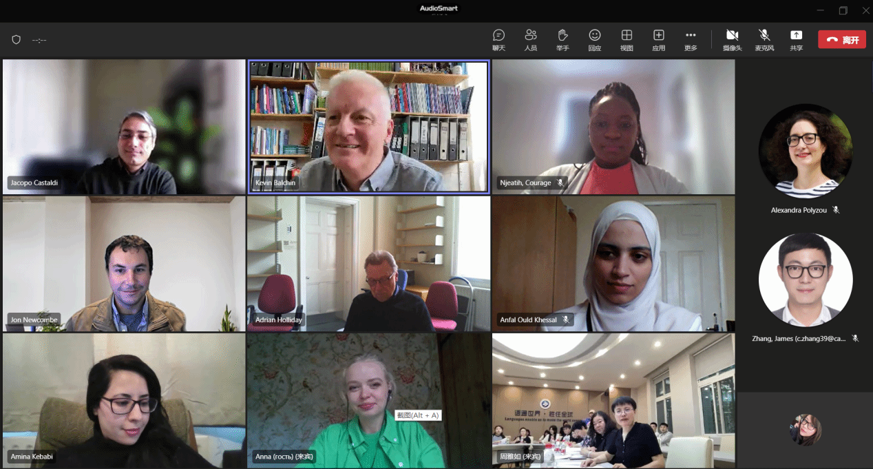 副院长张奕教授和英方主席坎特伯雷大学文化与语言学中心主任Kevin Stuart Balchin教授联合主持,中英双方师生代表及素人