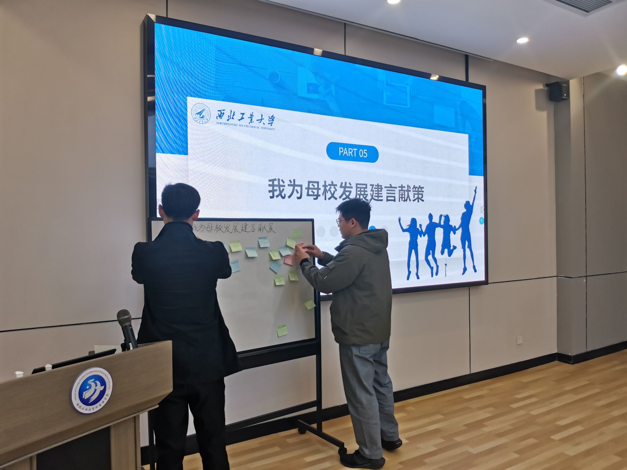 最后,在“我为母校发展建言献策”环节,同学们积极踊跃,纷纷在便签纸上写下对学院建设发展的祝福、意见和建议,并粘贴在留言板上。