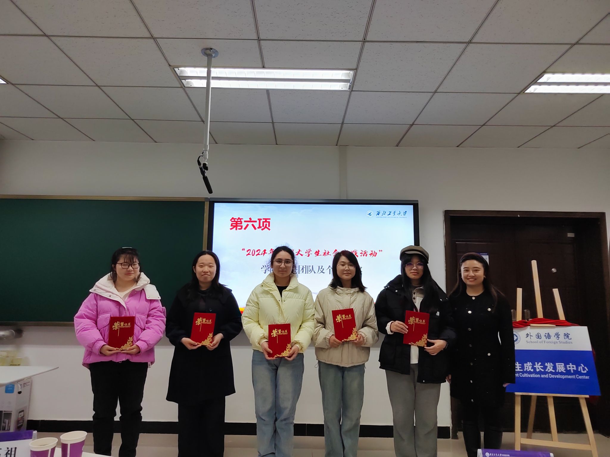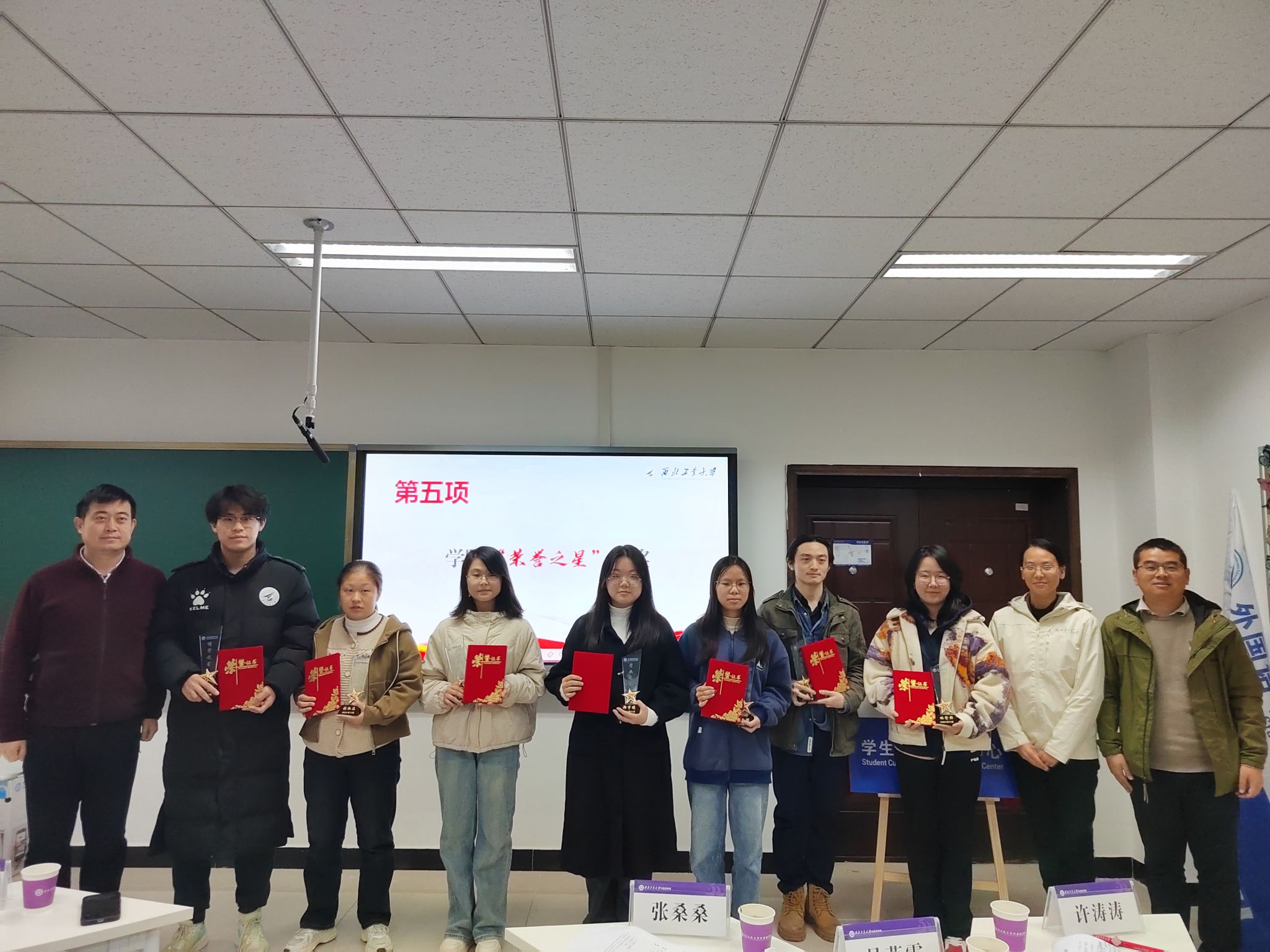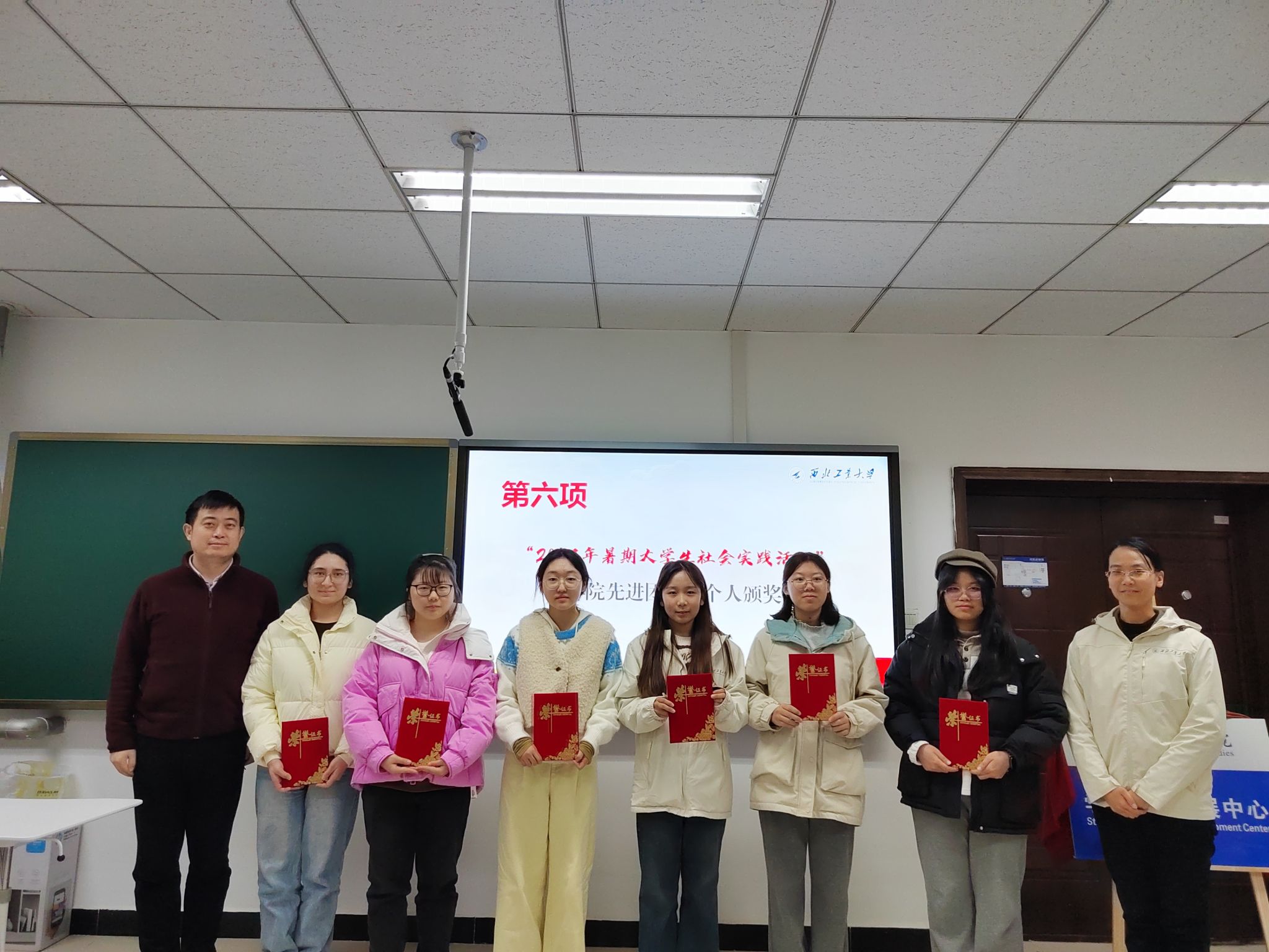 在颁奖环节,崔孝彬、许涛涛和吴蕊霖三位老师为获得学院“荣誉之星”的同学颁奖。该奖项对标学校单项荣誉,旨在表彰在学习和各类活动中表现突出的同学。本次共表彰了8位在德智体美劳等方面表现突出的同学。接着,许涛涛介绍了我院2024年暑期大学生社会实践活动的开展情况,并宣读了获奖团队及个人名单,对同学们在实践中展现出的良好综合素质予以充分肯定。