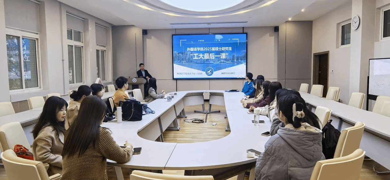3月19日上午,学院党委书记王高祖以“语言为本、文化立心、踔厉奋发”为题,在学院204会议室为我院2025届硕士毕业生讲授“工大最后一课”。院党委副书记张桑桑、研究生辅导员赵青及2025届硕士毕业生参加。