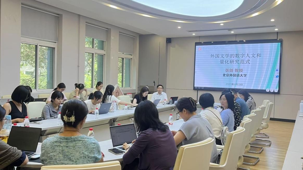 6月13日下午,北京外国语大学二级教授、博士生导师张剑教授应邀到我院,为师生带来一场主题为《外国文学的数字人文和定量研究范式》的讲座。本次讲座由院长孙瑜主持,党委书记王高祖及40余位师生参加。