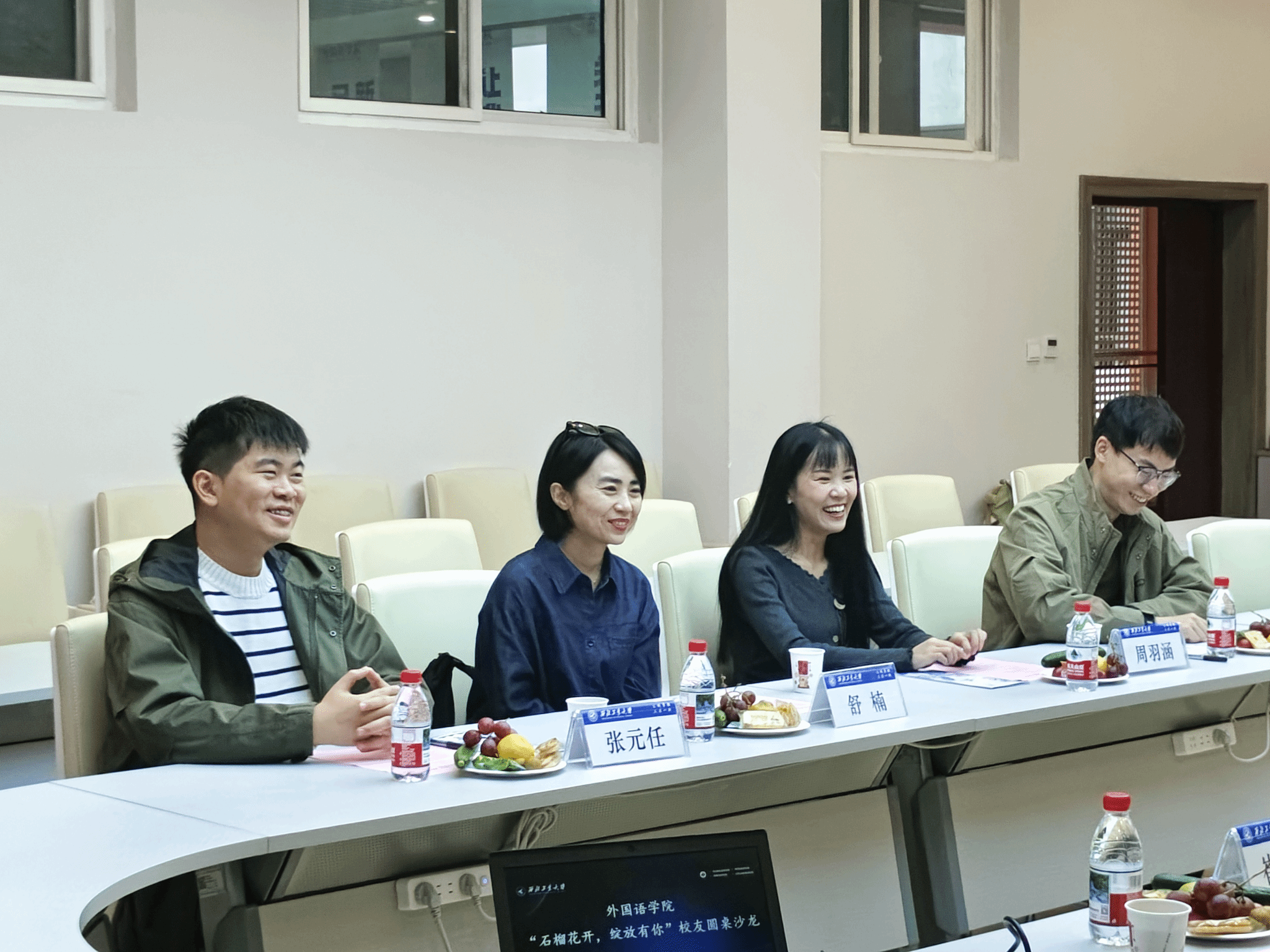 会议伊始,校友们逐一作了简单的自我介绍,分享了当前的职业发展现状,现场充满欢声笑语。随后,张桑桑向校友们详细介绍了学院近年来的发展成就与未来规划,从学科建设、人才培养到国际交流,全面展现了学院的新面貌与新气象。她指出,学院的发展需要广大校友的长期支持和关注,希望未来能够在人才培养方面能够为学院的师弟师妹提供更多的实习实践契机和平台,尤其是在国际化人才培养和中华文化传播方面加强业务合作,也期待校友们能常回家看看。