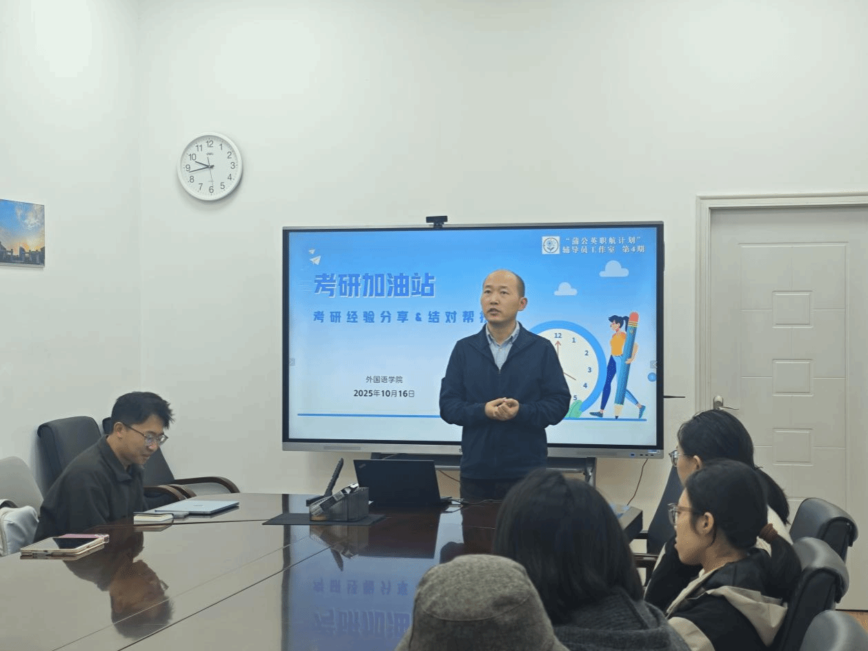 10月16日,在“蒲公英职航计划”辅导员工作室的指导下,学院“语翼知行中心”在219会议室开展“考研加油站”主题活动。辅导员赵青邀请四位研究生新生分享升学备考经验,并启动结对帮扶机制,为有升学意向的大四本科生答疑解惑、精准护航。
